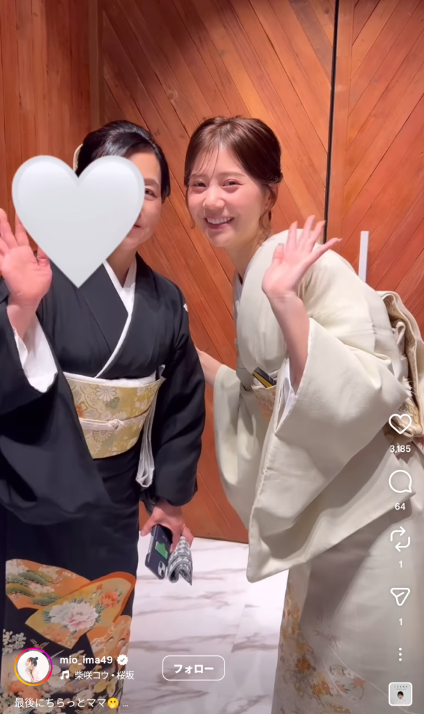 今井美桜さんの姉の結婚式のときの投稿が、自身のインスタグラムで投稿されており、母親がちらっと写っていました。