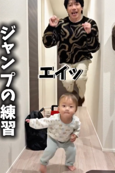 息子と一緒にぴょんぴょんと飛び跳ねる矢澤さんの姿も撮影されていました。